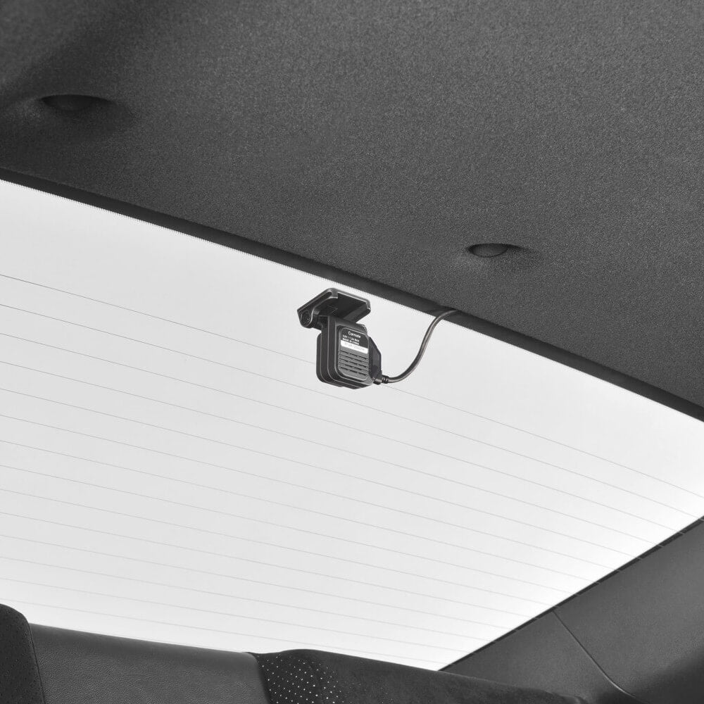Seamless and 360° recording. The 360° camera records both sides and interior of your vehicle. Infrared LED for brighter nighttime recognition of vehicle interior *1